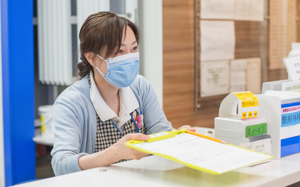 受付や会計での患者さんとの対応では明るい声でゆっくりハキハキと聞き取りやすい話し方を心がけています。私たちの言葉遣いが患者さんの不安を取り除いたり、信頼作りに繋がったりするポイントになると認識して、スムーズなコミュニケーションを大切にしています。