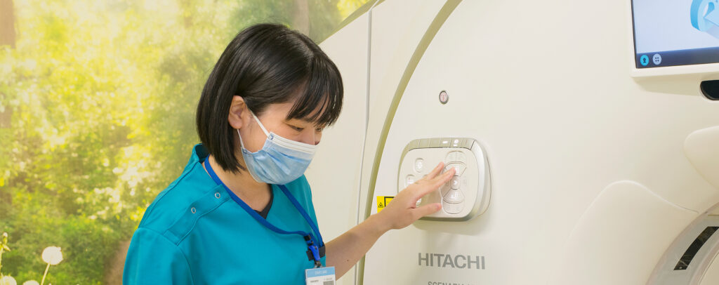 最初は看護師を目指していましたが、臨床検査技師など、医療分野の他の仕事にも興味があり、調べていくうちに、自身の専門技術を磨いていける、医療技術職・放射線技師の方が向いていると思い、資格を取得しました。患者さんと直接的な深い関わりはないものの、医師とは違った立場・視点から患者さまの回復に大きく貢献できることに魅力を感じました。診断や治療方針に大きな影響をおよぼす仕事であるとの使命感をもって、日々仕事と向き合っています。